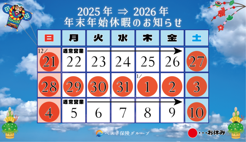 休業期間:2025年12月27日(土)~2026年1月4日(日)